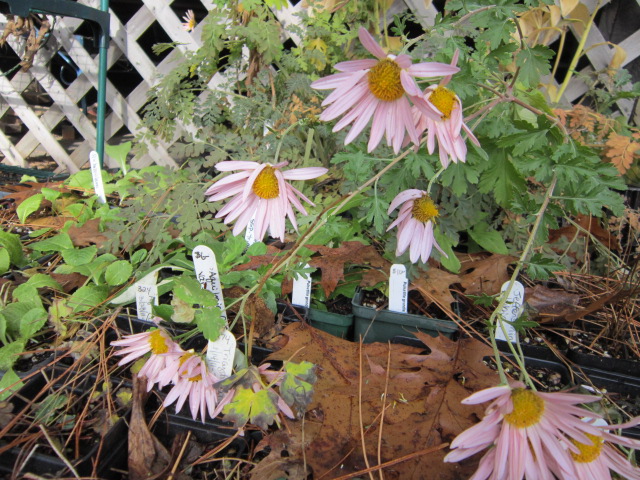 Dendranthema ‘Sheffield’ a very late blooming shasta-type daisy. Great for cut flowers and if you have a large area to fill in. On the far side of the stream is a huge area of the so-called Ditch-Lily. That ‘wild’ Hemerocallis that seems to be everywhere along the roadsides. I want to take it out and wonder if D. ‘Sheffield’ will be up to the task.