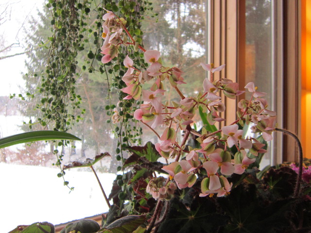 An eyelash Begonia that I’ve had for many years and blooms twice a year for me. It’s called an ‘eyelash’ Begonia for its little hairs all along the outer edges of the leaves that look just like little eyelashes!