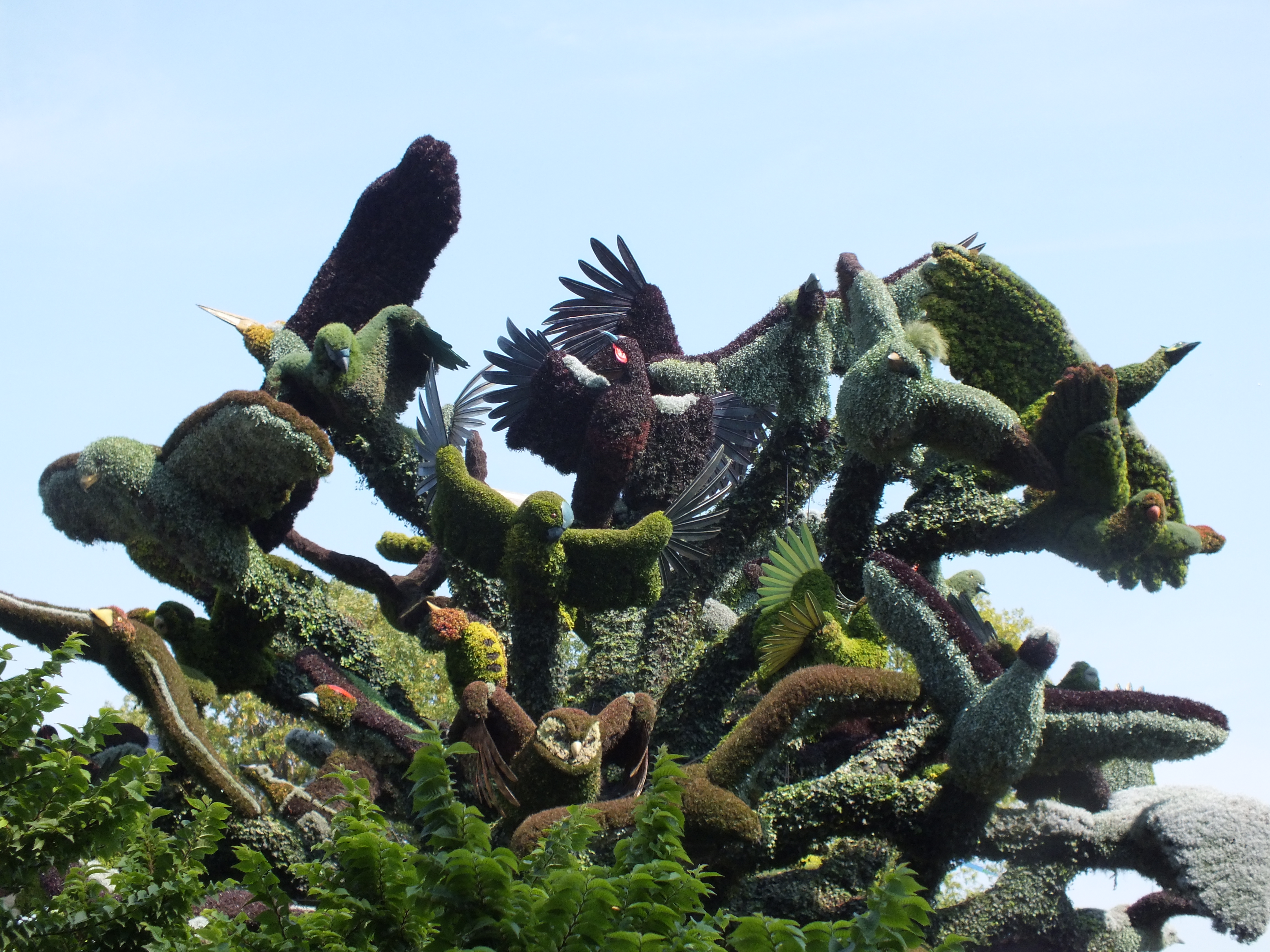And this is just a select few! There were many others that we didn’t see and loads more that I didn’t get good photos of. The most amazing one..in my opinion..was the ‘Bird Tree’. Unfortunately the crew was working on it so we couldn’t get a pristine view of it…but stupendous all the same. All of the sculptures are formed from a mesh that small rooted plugs of mostly brightly colored foliage is then inserted following a precise pattern to create each block of color.